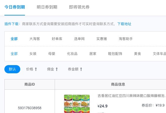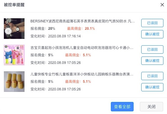 系统会不断扫描推广进行中商品佣金变化情况,及时提醒佣金出现变化的商品,防止同行恶意敲单行为