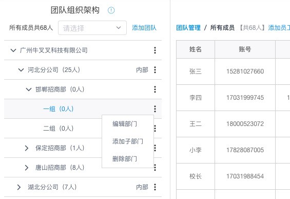 主账号,组长能随时观测员工的行为轨迹,提升招商效率